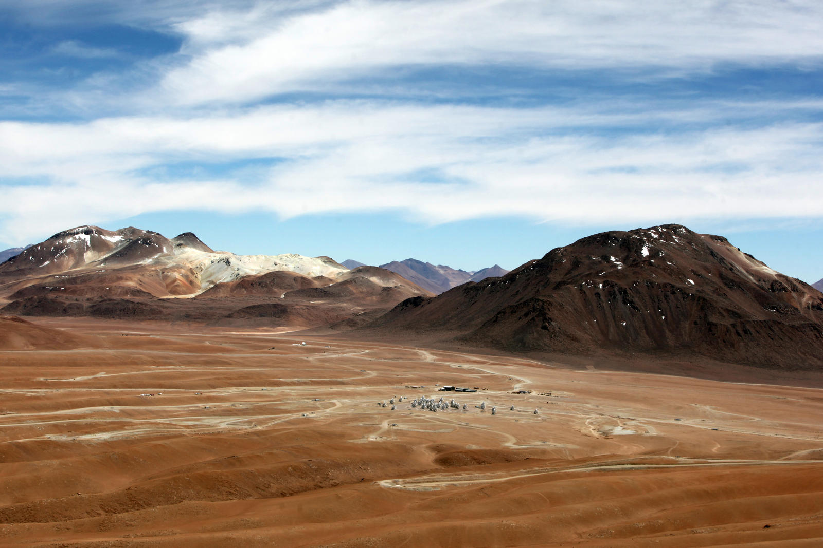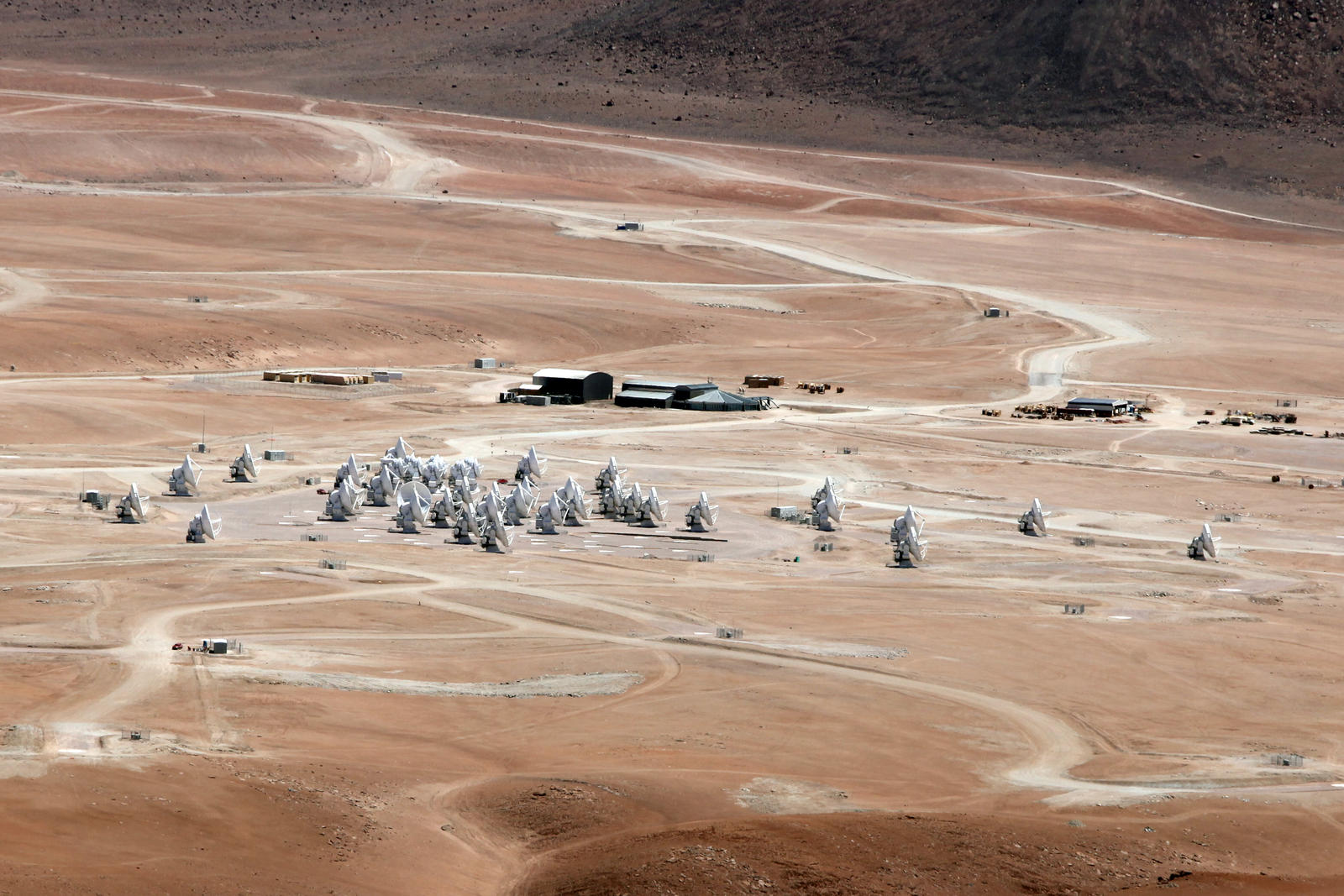 Vista aérea do centro de operações do radiotelescópio ALMA, a 2900 metros