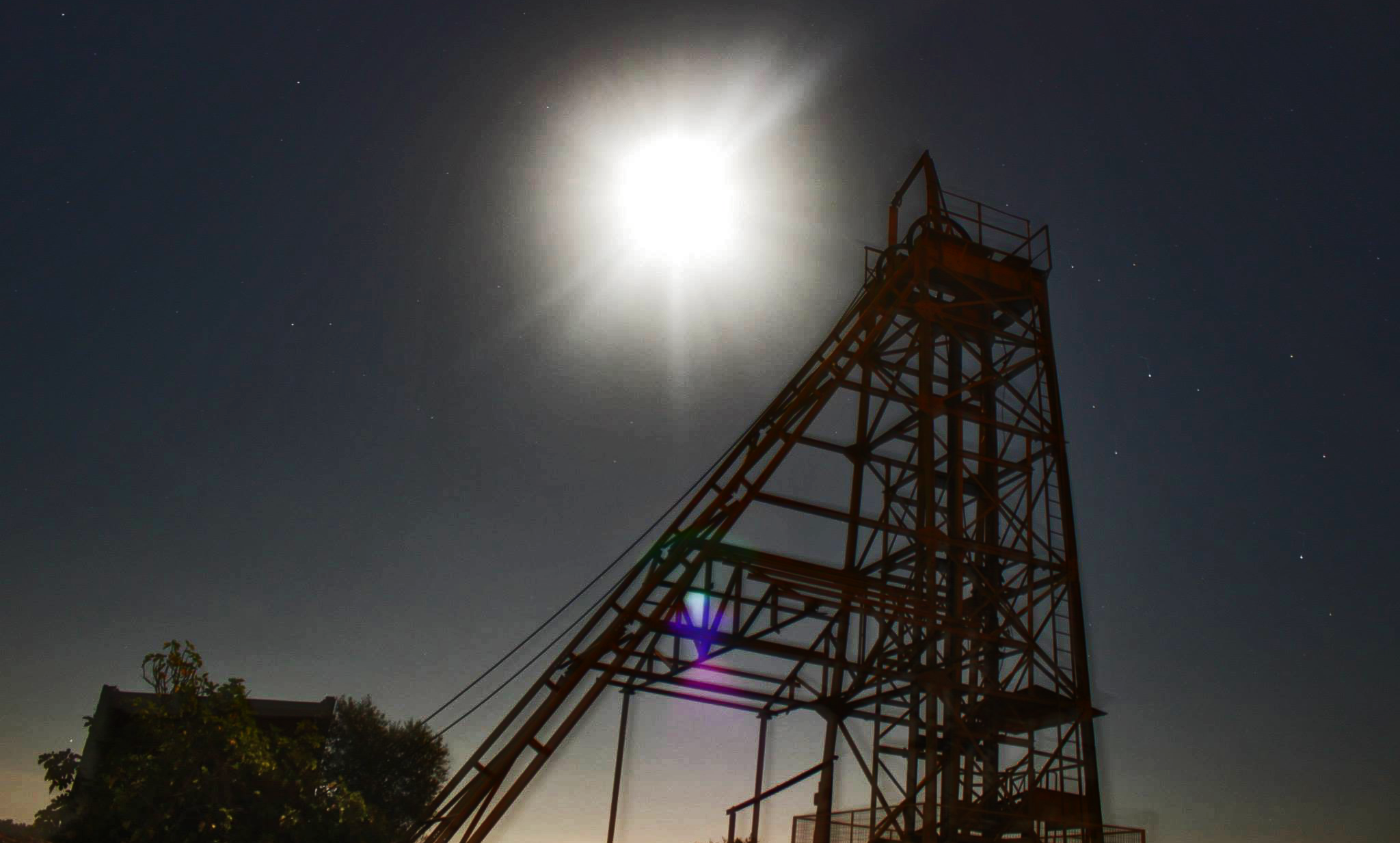 O céu nocturno numa noite de lua cheia. O brilho é tal que uma máquina
