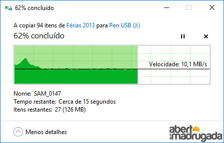 Uma pasta com 95 imagens que perfaziam 338MB, demorou 37s a copiar para o