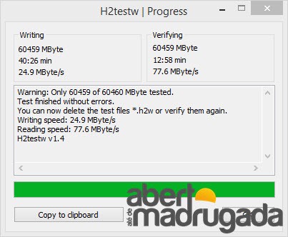 para o PC, a uma velocidade de 32,6MB/s, valor inferior ao máximo teórico,