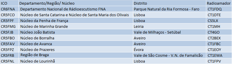 Fontes consultadas: Blogue CT-Spot Radioamadorismo em Portugal e Lista