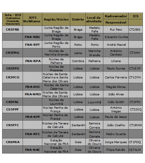 *A lista de estações da FNA para participar no JOTA JOTI de 2017*